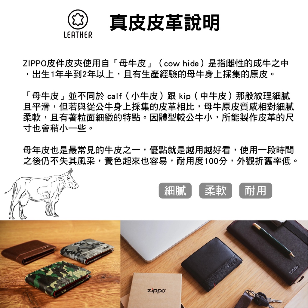 ZIPPO 黑色牛皮雙折皮夾 皮件皮夾 錢包 皮包 男生皮夾 男士短夾 真皮皮夾 牛皮皮夾 2006021