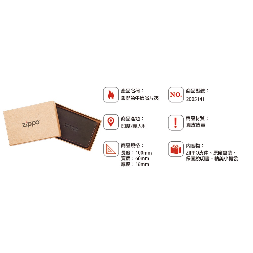 ZIPPO 咖啡色牛皮名片夾 皮件皮夾 錢包 男士名片夾 男生皮夾 名片盒 牛皮名片夾 2005141
