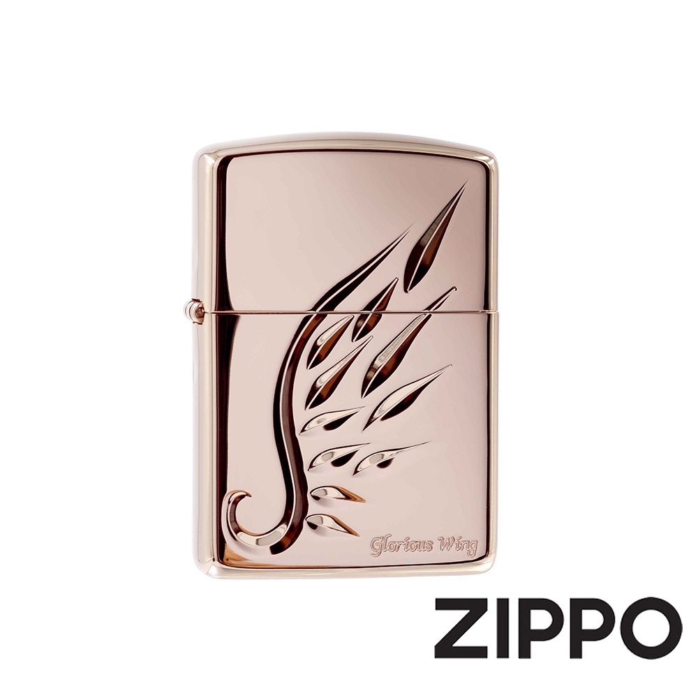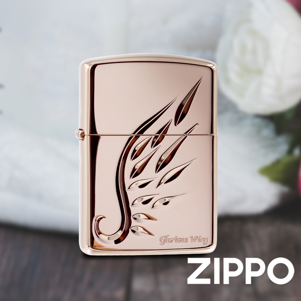 ZIPPO 精雕玫瑰金色羽翼(加厚版)防風打火機 日本設計 官方正版 現貨 限量 禮物 送禮 終身保固 ZA-5-32D