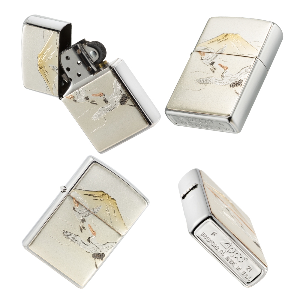 ZIPPO 日本傳統風格-鶴與富士防風打火機 ZA-5-26B 白鶴 飛翔 金色富士山 髮絲紋機 貼印技術 終身保固