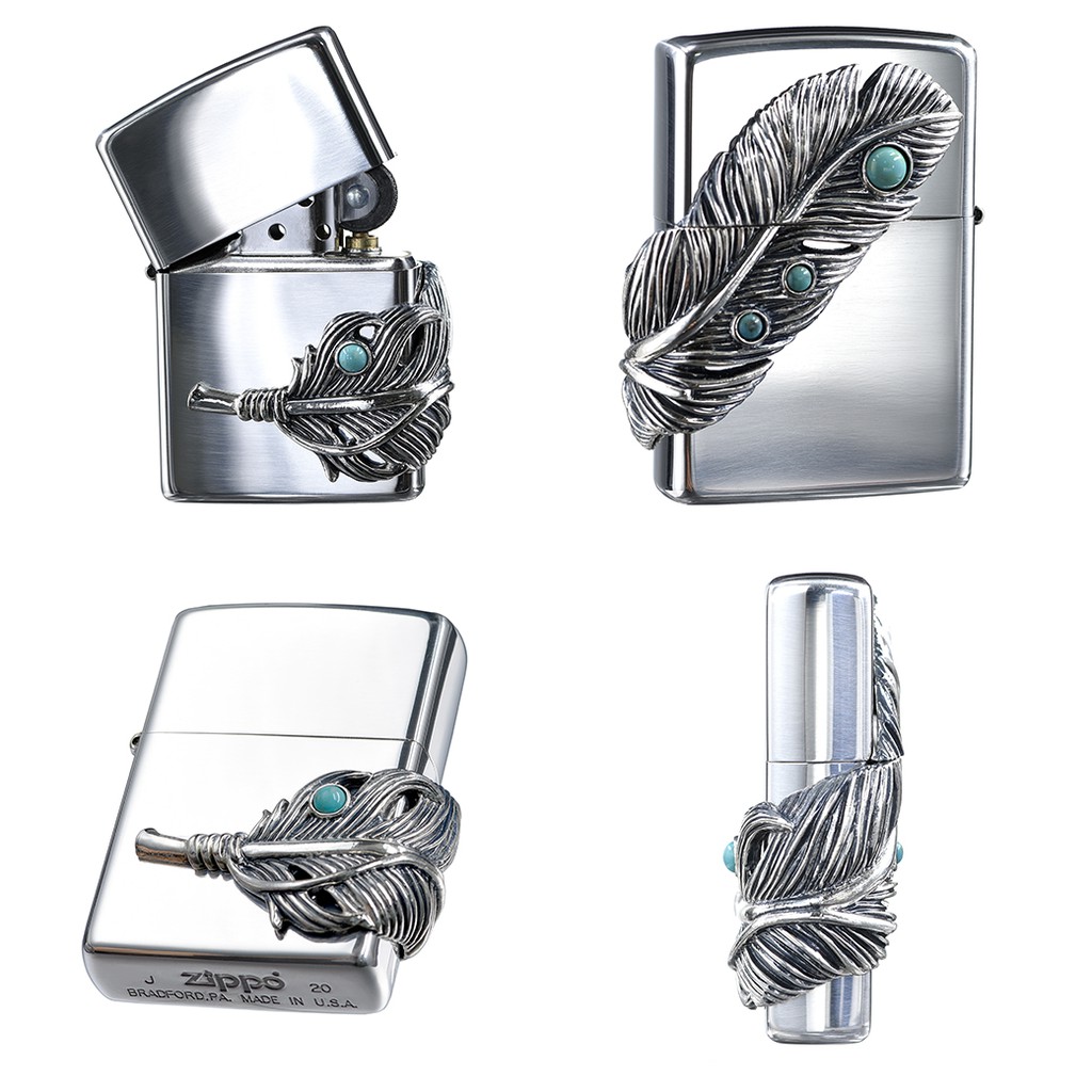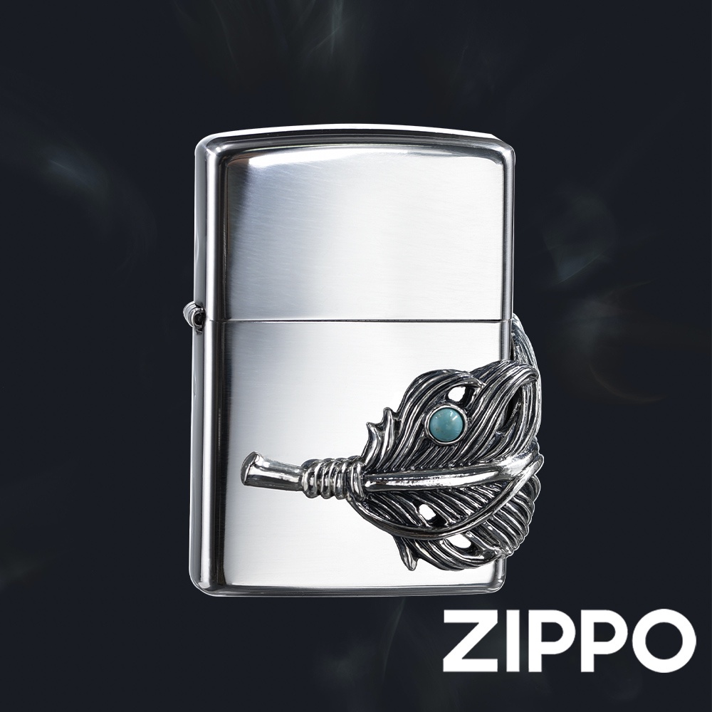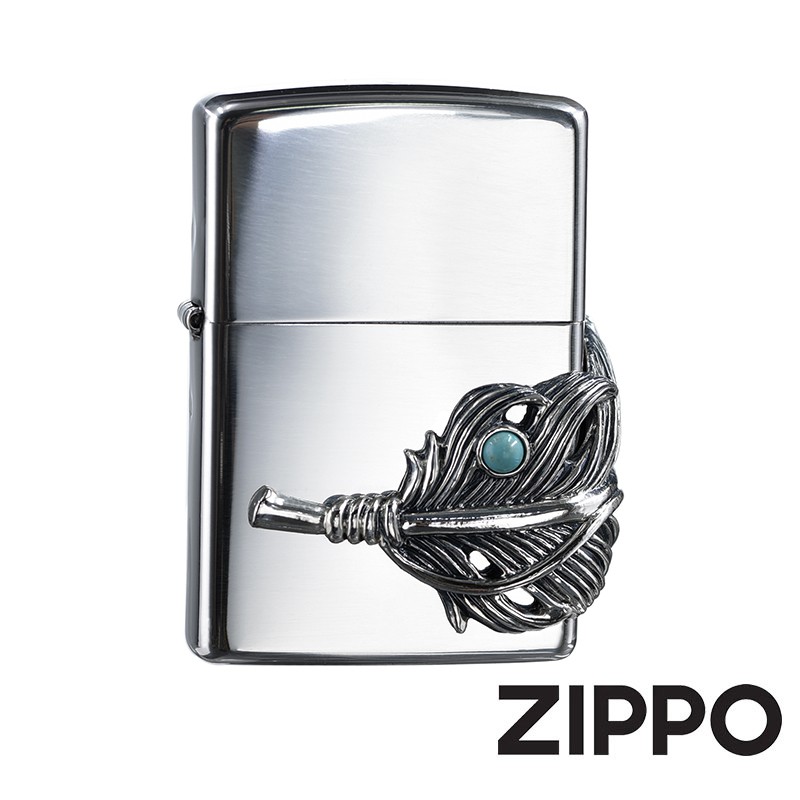 ZIPPO 綠松石金屬羽毛(銀色)防風打火機 日本設計 官方正版 現貨 限量 禮物 送禮 終身保固 ZA-5-161B