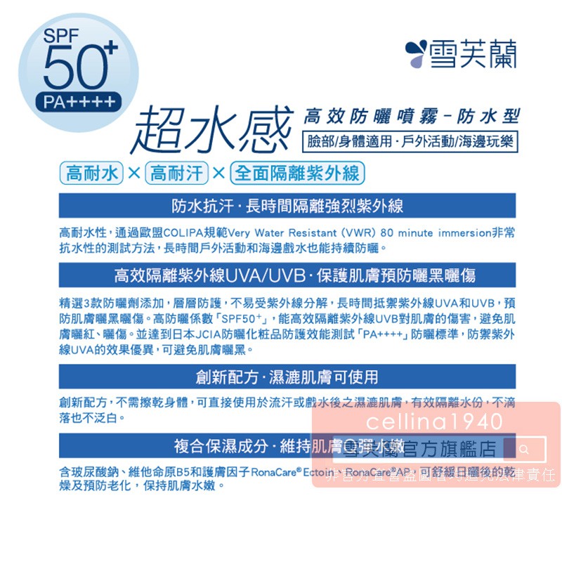 【雪芙蘭】超水感高效防曬噴霧(防水型)50g SPF50+PA++++ 官方旗艦店