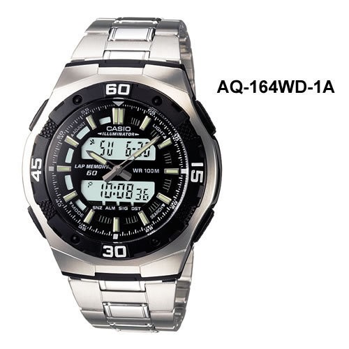 【宏崑時計】CASIO 卡西歐原廠防水多功能雙顯男錶AQ-164WD AQ-164WD-1 台灣卡西歐保固一年