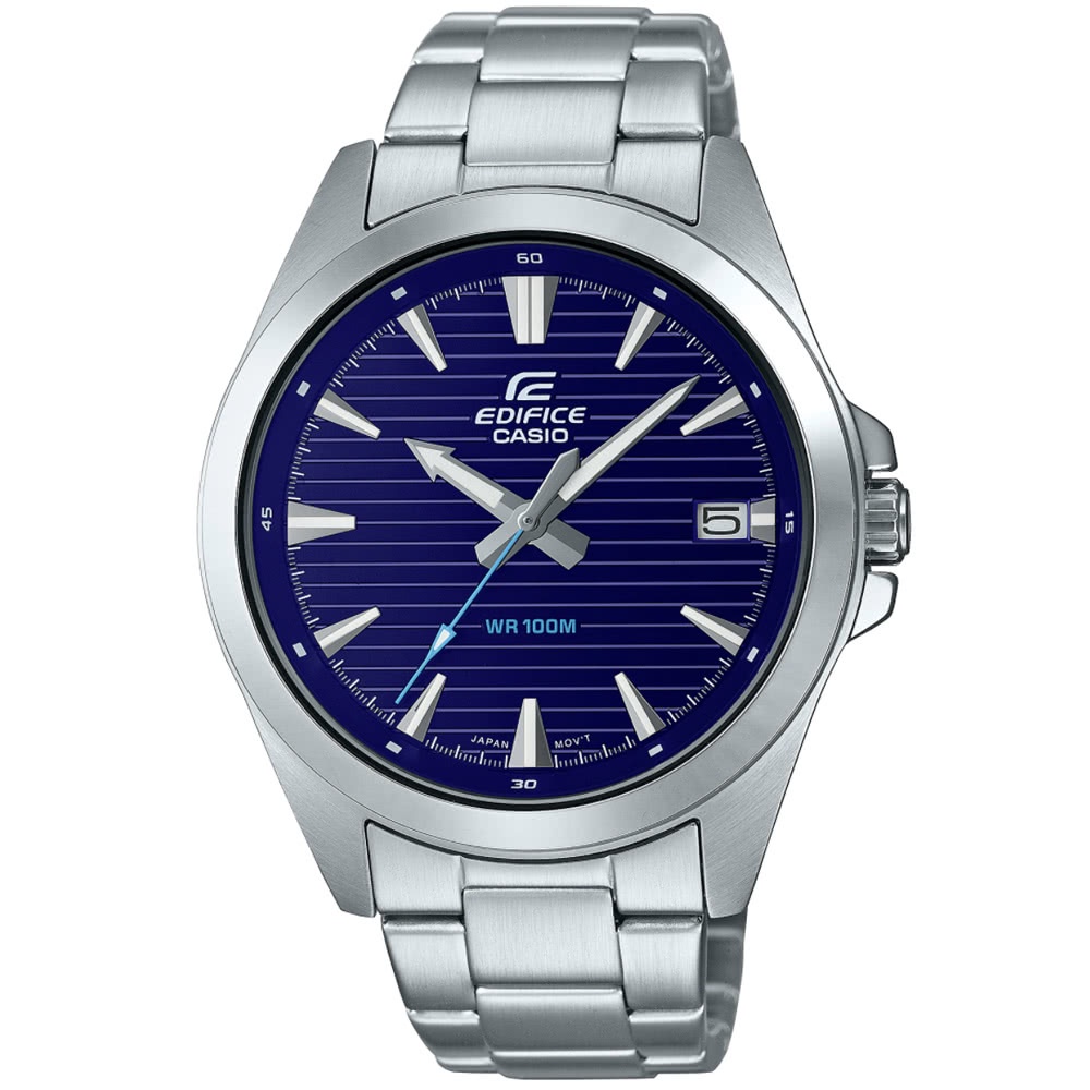 【CASIO】 EDIFICE 經典款簡約計時日曆腕錶 EFV-140D-2A 藍面 台灣卡西歐保固一年