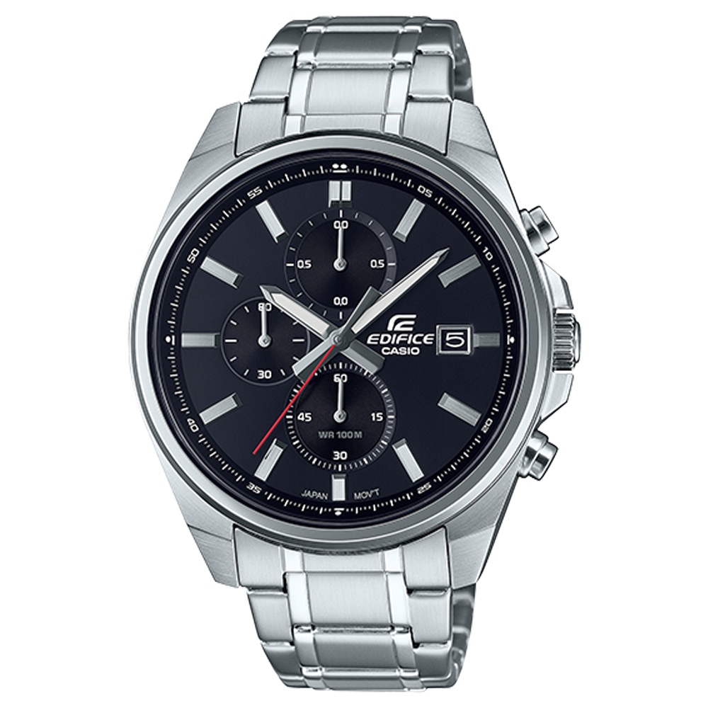 【CASIO】卡西歐 EDIFICE經典三針三眼大錶面日期顯示不鏽鋼錶-黑面(EFV-610D-1A)台灣卡西歐保固一年
