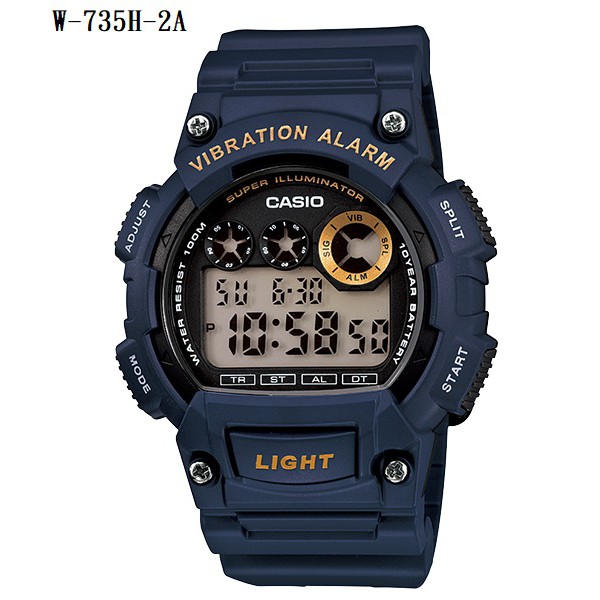 【CASIO】CASIO卡西歐防水運動錶 W-735H 震動鬧鈴 100米防水 台灣卡西歐保固一年