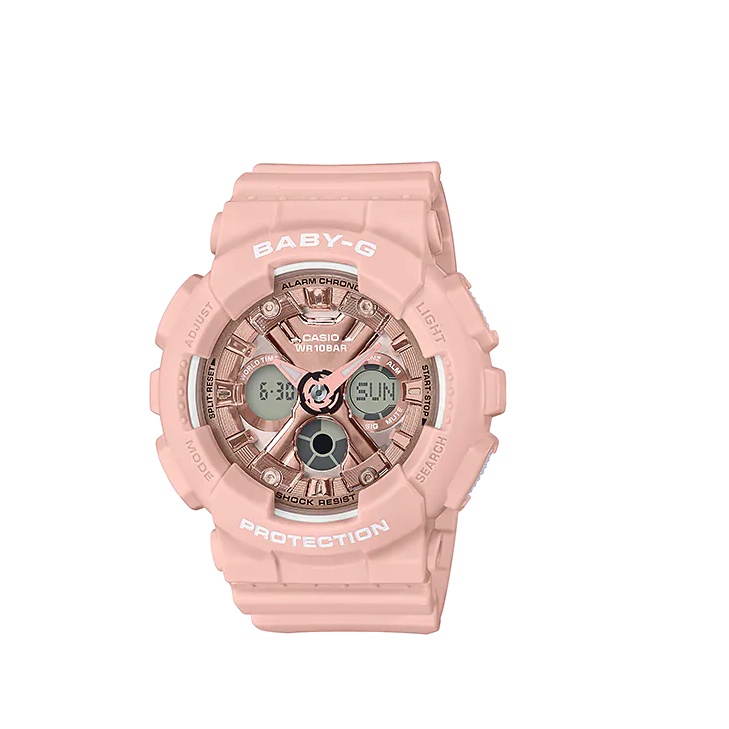 【CASIO】BABY-G 混搭金屬三眼搖滾甜美運動女錶 粉紅BA-130-4A 台灣卡西歐保固一年