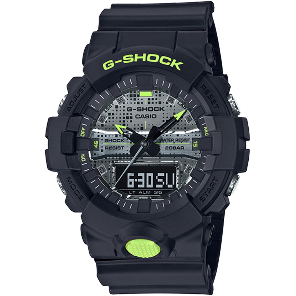 【CASIO】卡西歐 G-SHOCK 點陣迷彩霧黑雙顯計時錶 GA-800DC-1A 台灣卡西歐保固一年