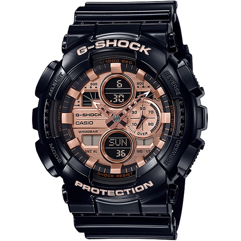 【CASIO】卡西歐 G-SHOCK 雙顯運動錶-黑 X 玫瑰金 GA-140GB-1A2 台灣卡西歐保固一年