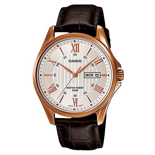 【CASIO】卡西歐 專業時尚羅馬紳士皮帶腕錶-白面 MTP-1384L-7A 台灣卡西歐保固一年
