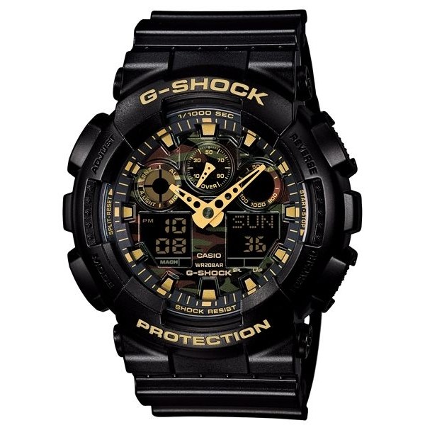 【CASIO】卡西歐G-SHOCK防水200米 耐衝撞 GA-100CF-1A9叢林迷彩 宏崑時計 公司貨保固一年