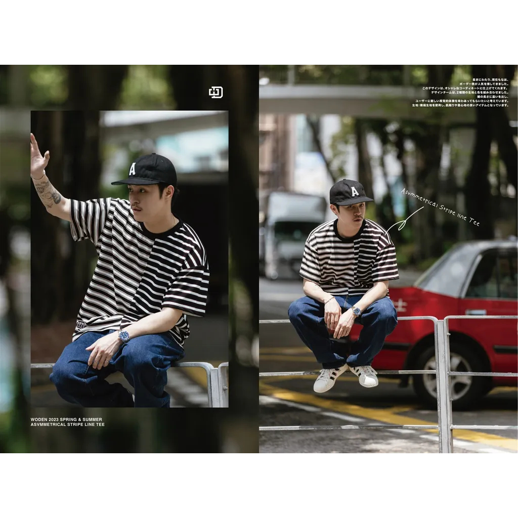WODEN 2023 Spring & Summer Asymmetrical Stripe Line Tee 短袖
