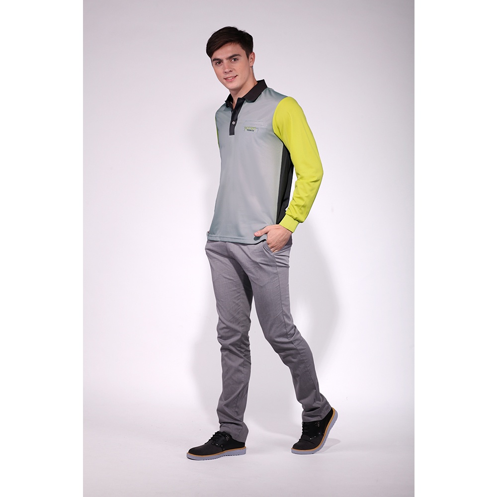 ROBERTA諾貝達 台灣製 抗UV 吸汗速乾 運動長袖POLO棉衫 灰黃