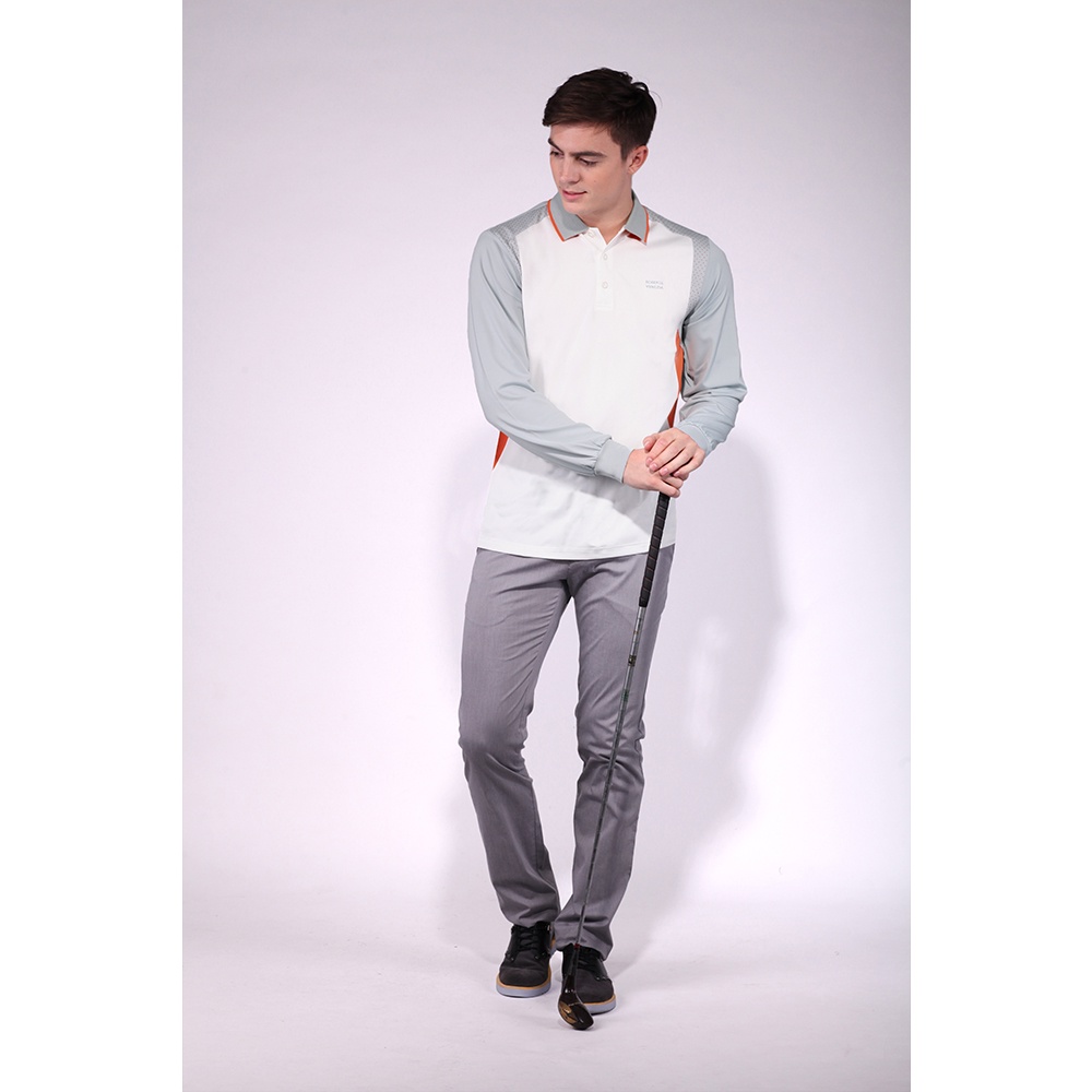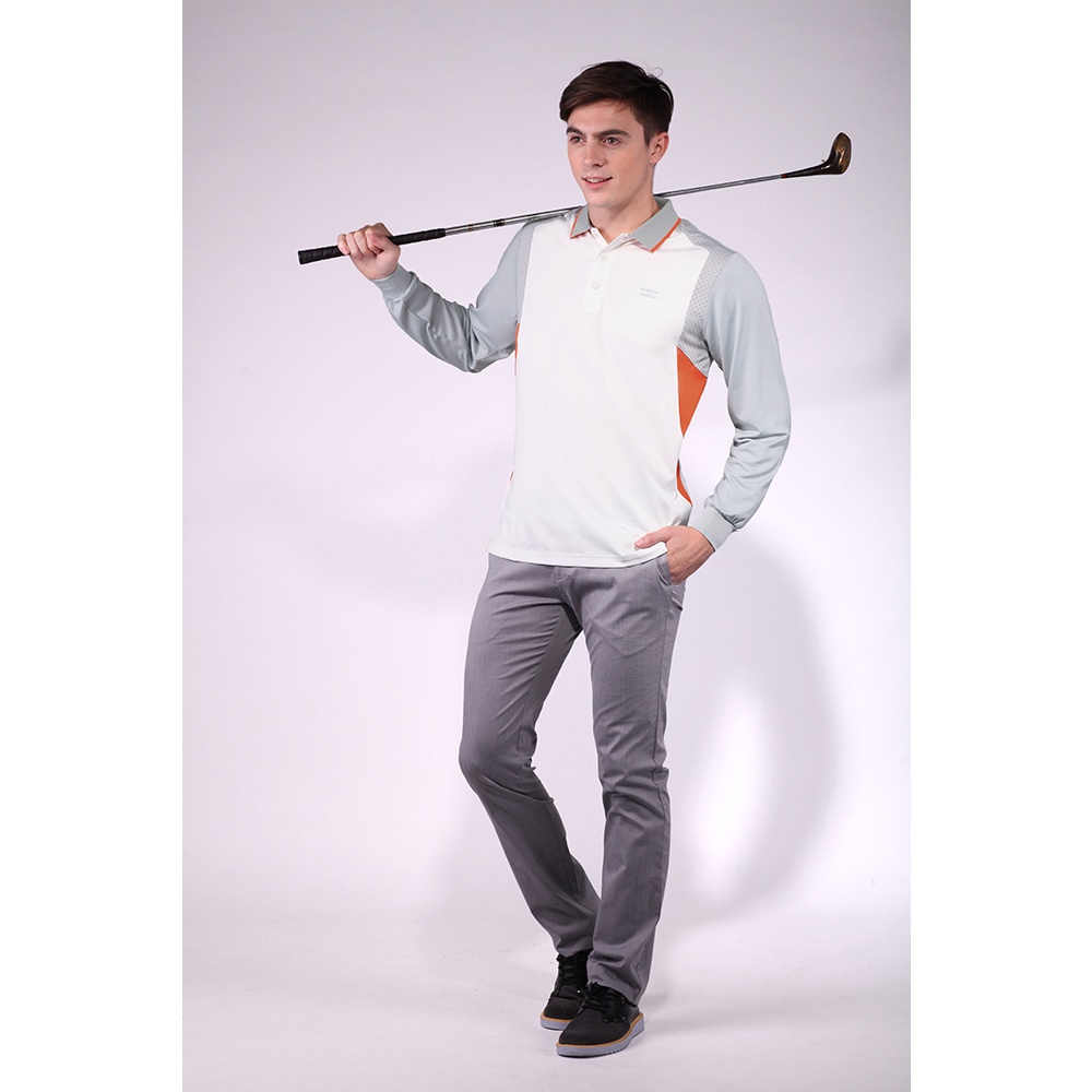 ROBERTA諾貝達 台灣製 運動款 吸溼排汗長袖POLO棉衫 灰白