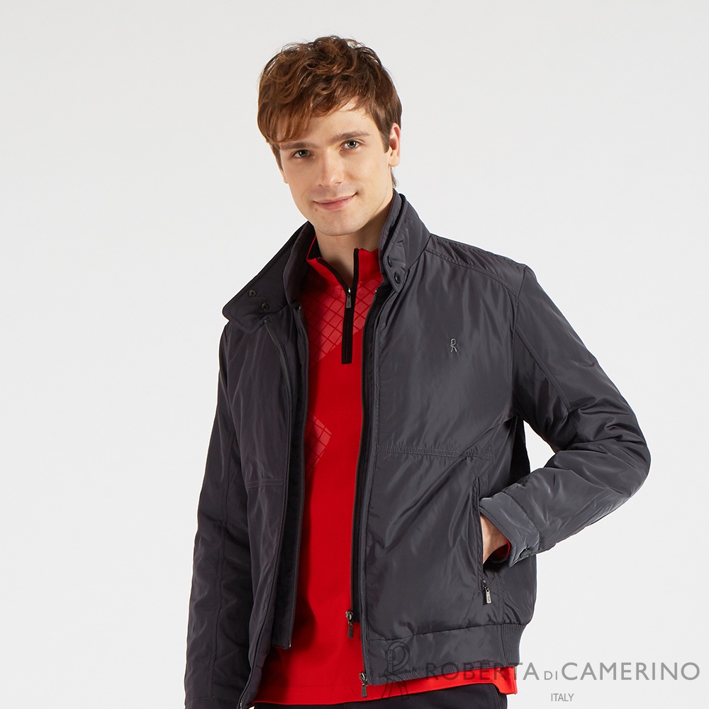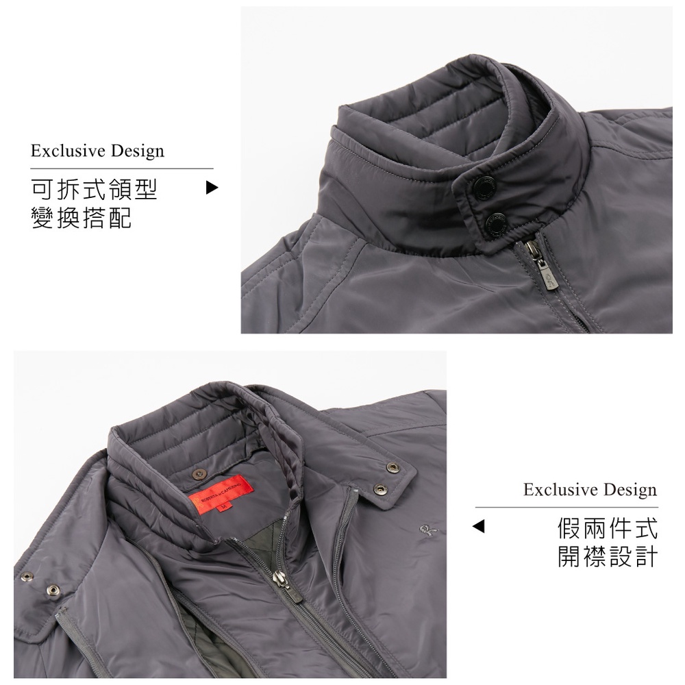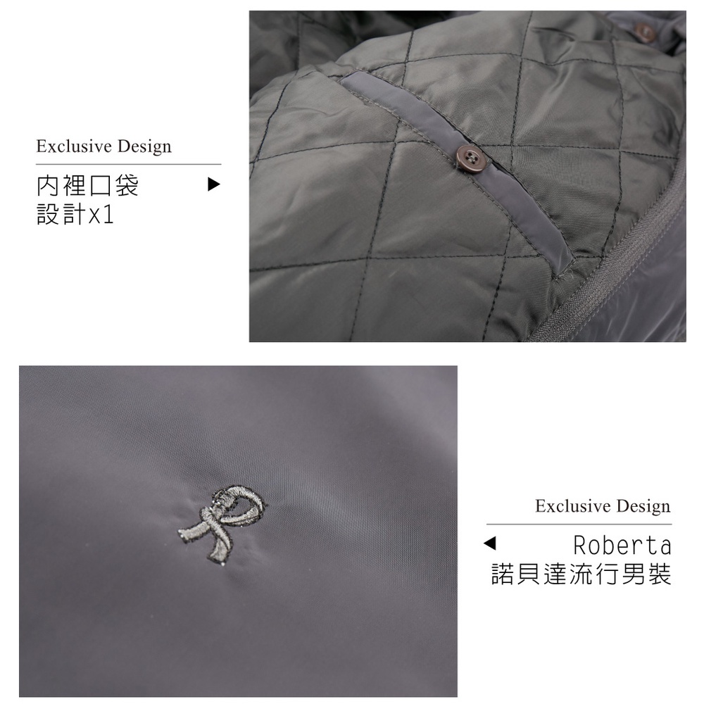 【ROBERTA諾貝達】 男裝 進口素材 防潑水 假兩件式舖棉夾克 黑灰