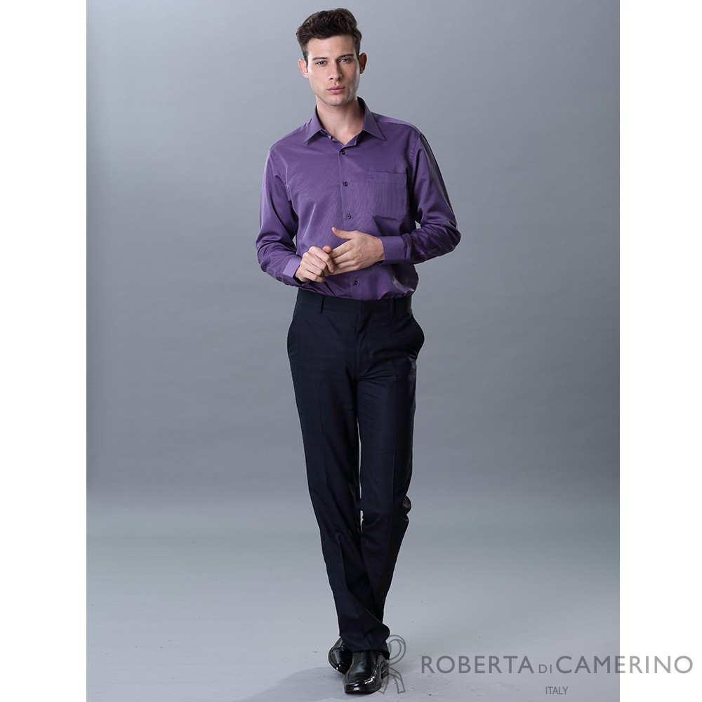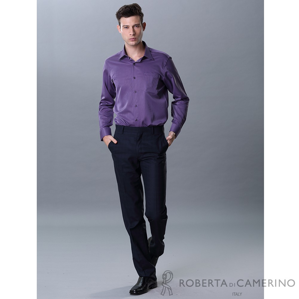 ROBERTA諾貝達 台灣製 合身版 吸溼排汗長袖襯衫 深紫