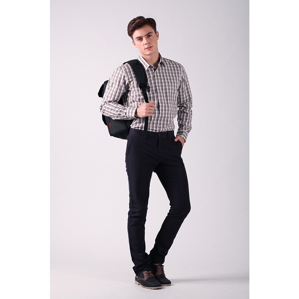ROBERTA諾貝達 台灣製 格調優雅 純棉經典長袖襯衫 棕色