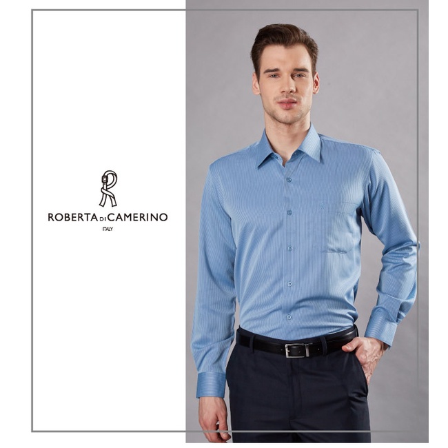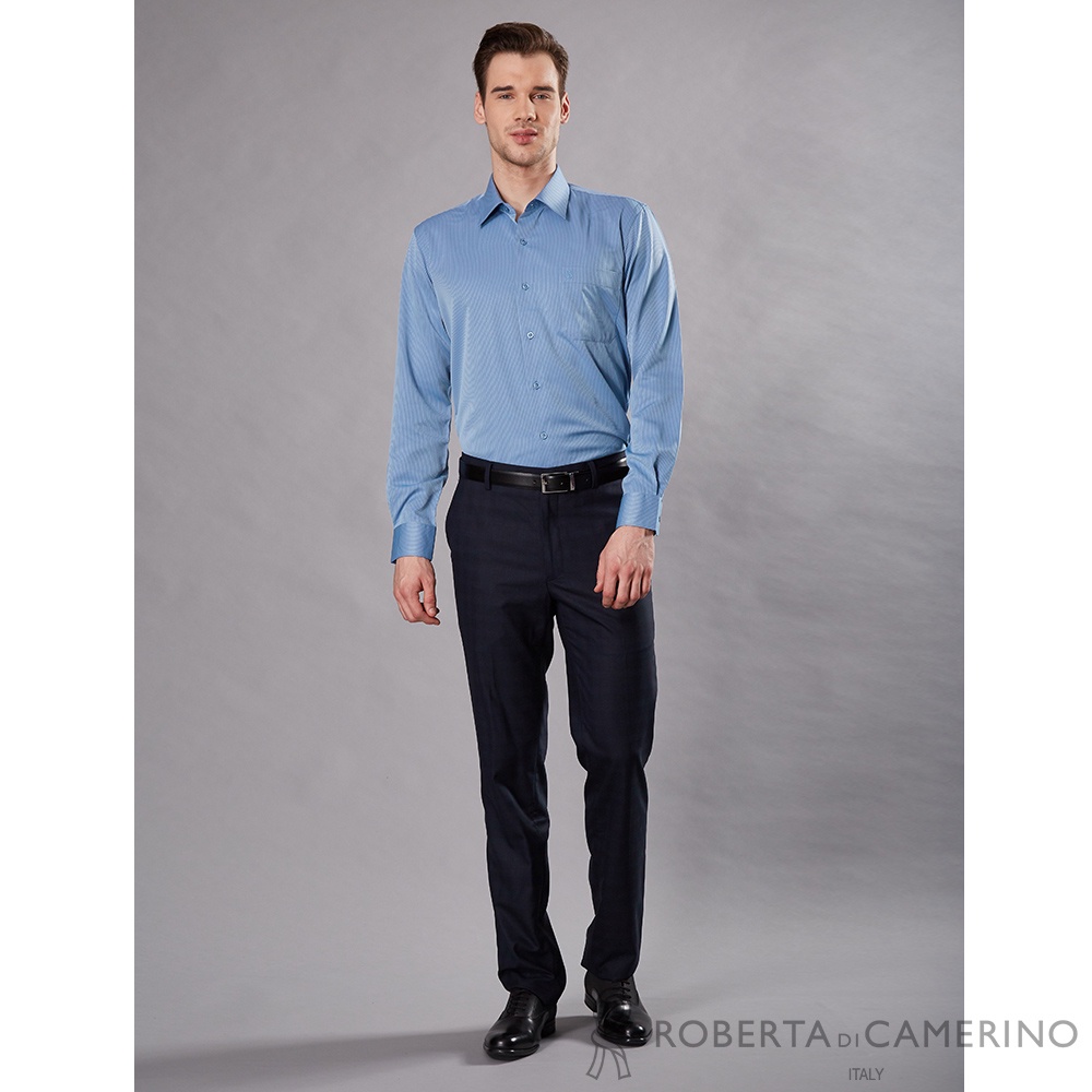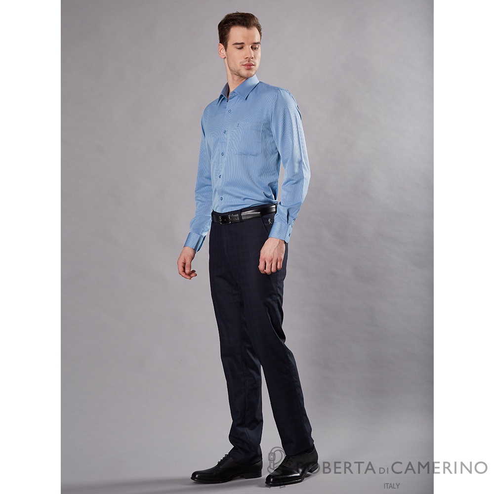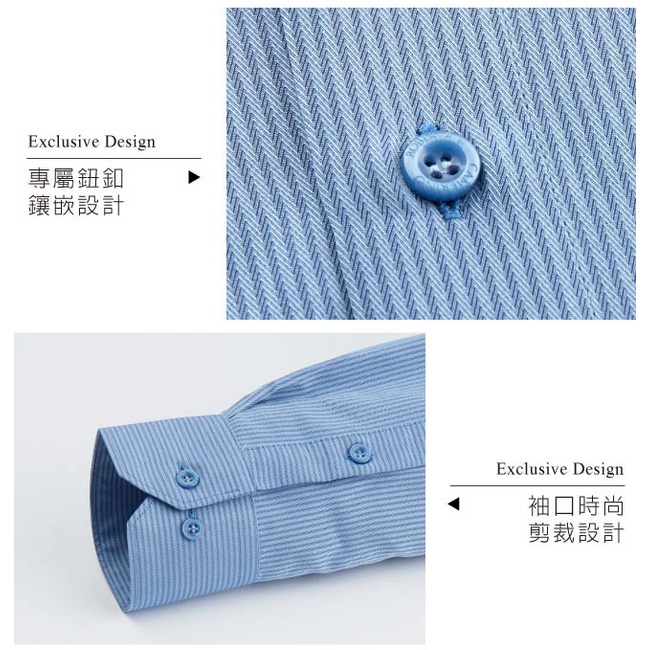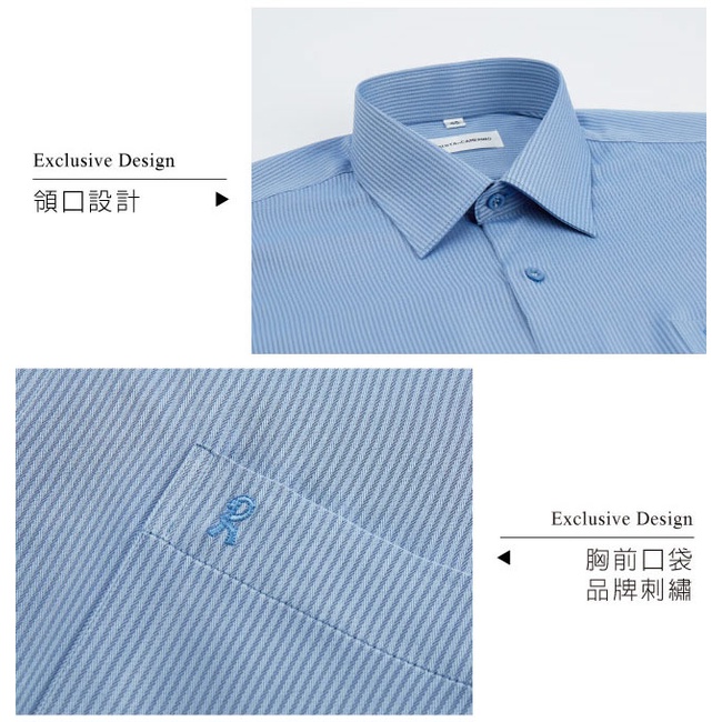 【ROBERTA諾貝達】 台灣製 吸濕速乾 商務條紋長袖襯衫 藍色
