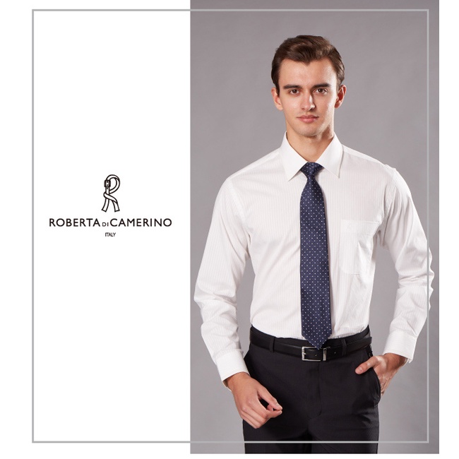 【ROBERTA諾貝達】 台灣製 合身版 商務型男 純棉長袖襯衫 白色