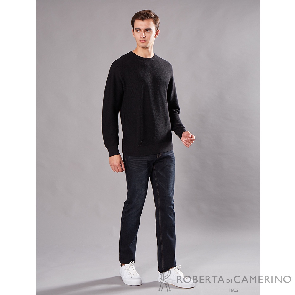 【ROBERTA諾貝達】 男裝 素面超細美麗諾純羊毛毛衣 HSG53-99 黑
