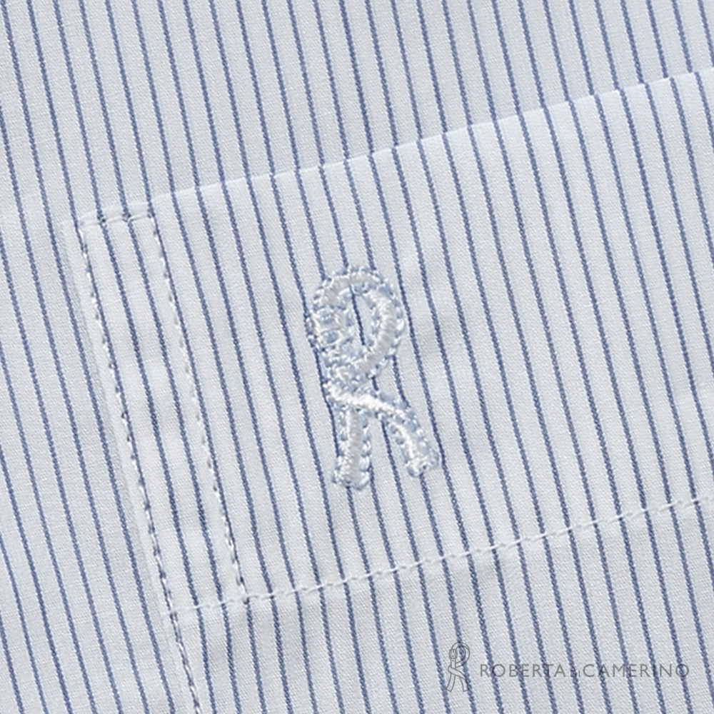 【ROBERTA諾貝達】 進口素材 台灣製 合身版 商務 純棉條紋長袖襯衫 藍色