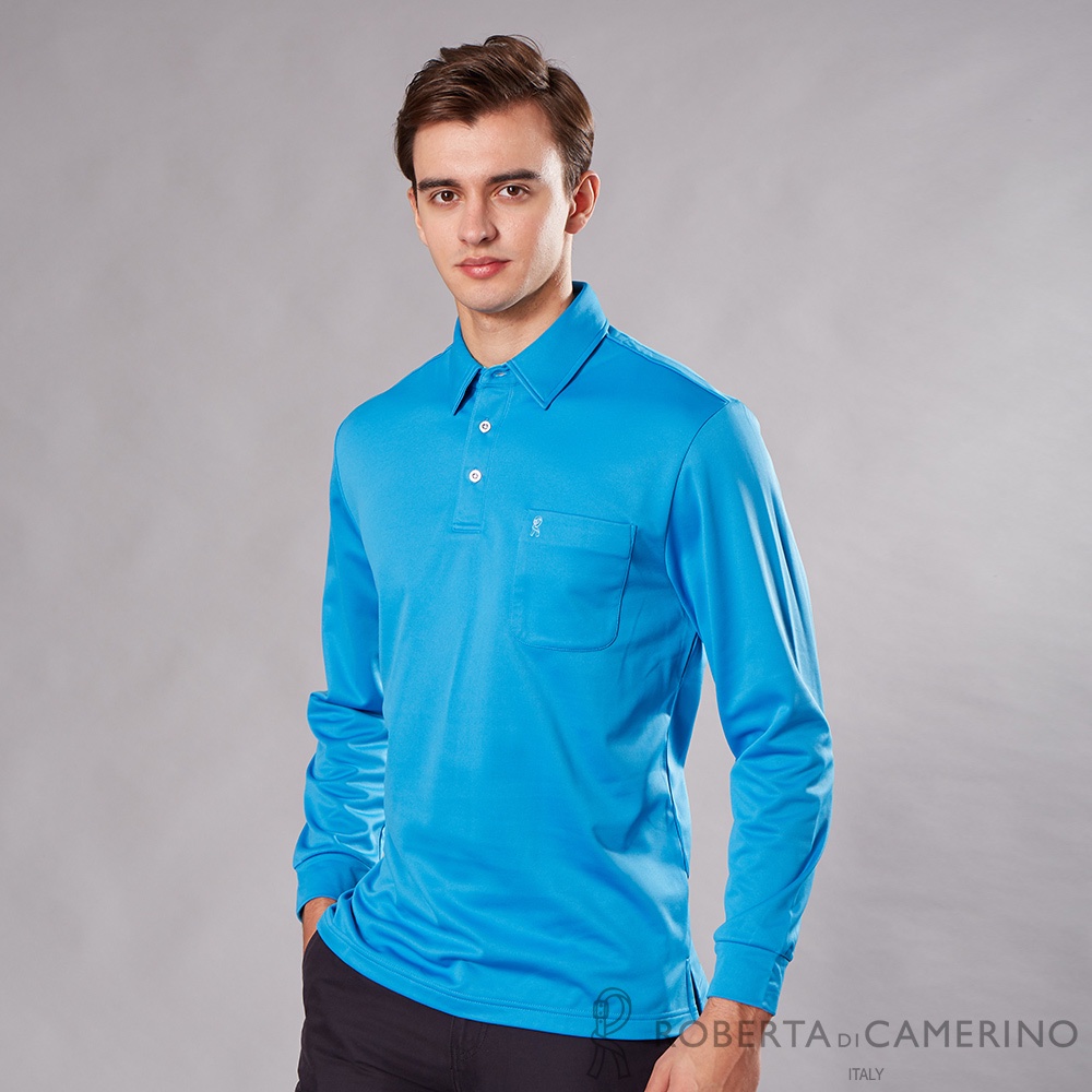ROBERTA諾貝達 台灣製 經典呈現 休閒長袖POLO棉衫 寶藍