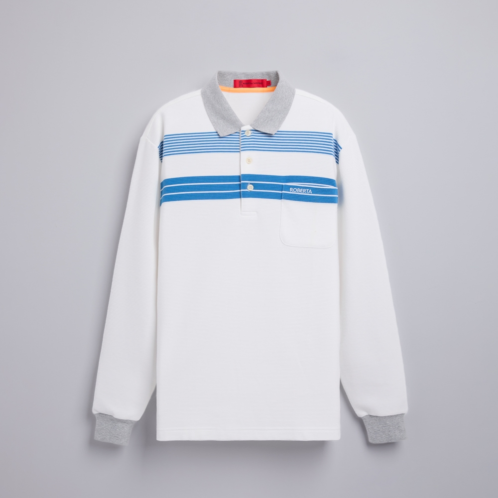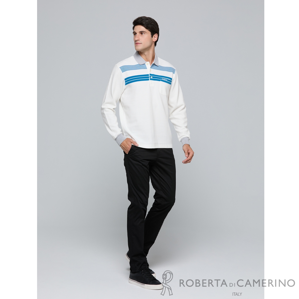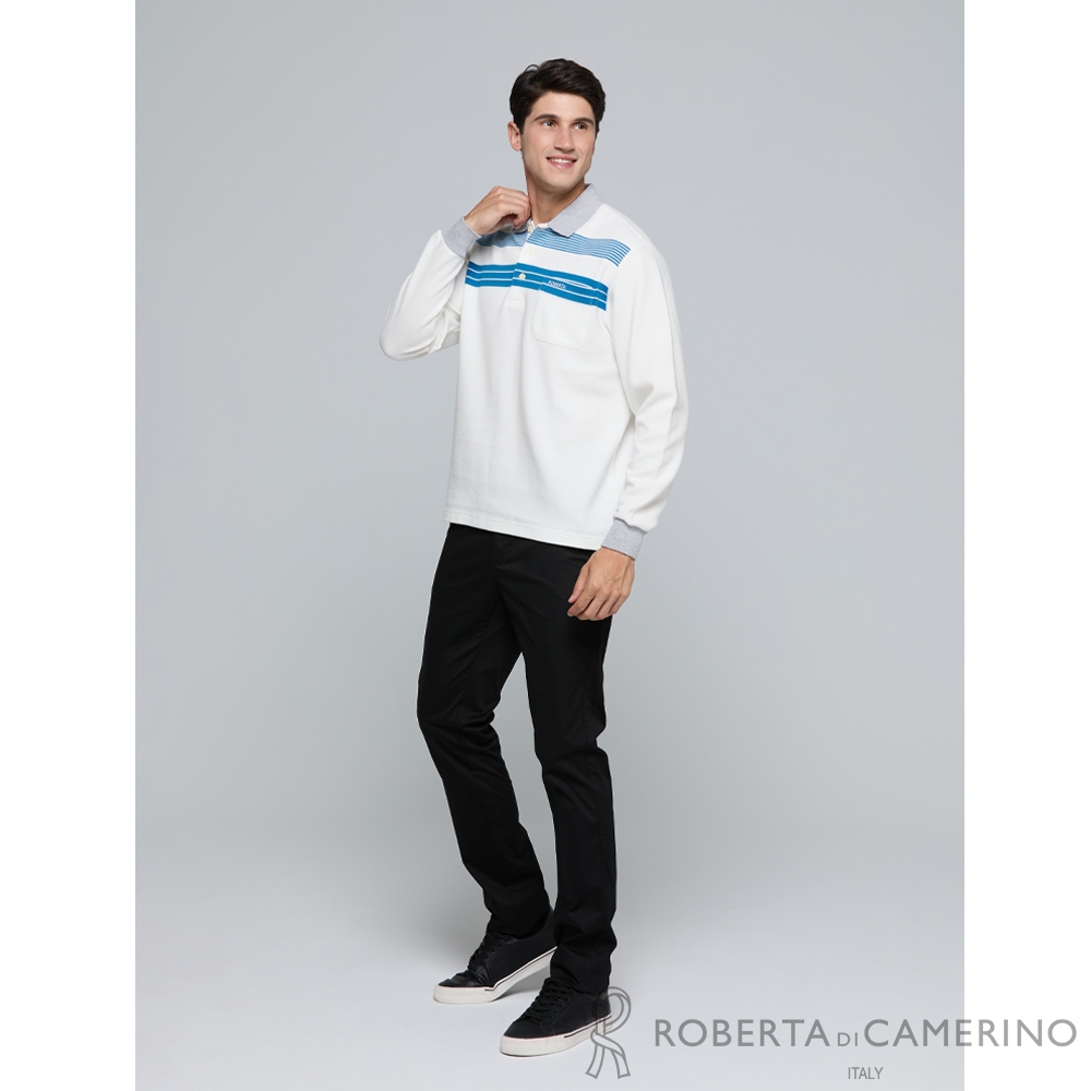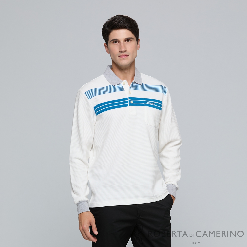 【ROBERTA諾貝達】 男裝 剪裁俐落 簡單有型長袖POLO棉衫 白 RBH61-81