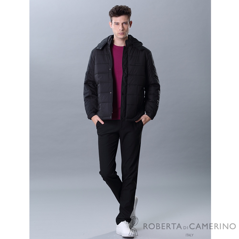 ROBERTA諾貝達 簡約休閒 鋪棉條紋夾克外套 黑色