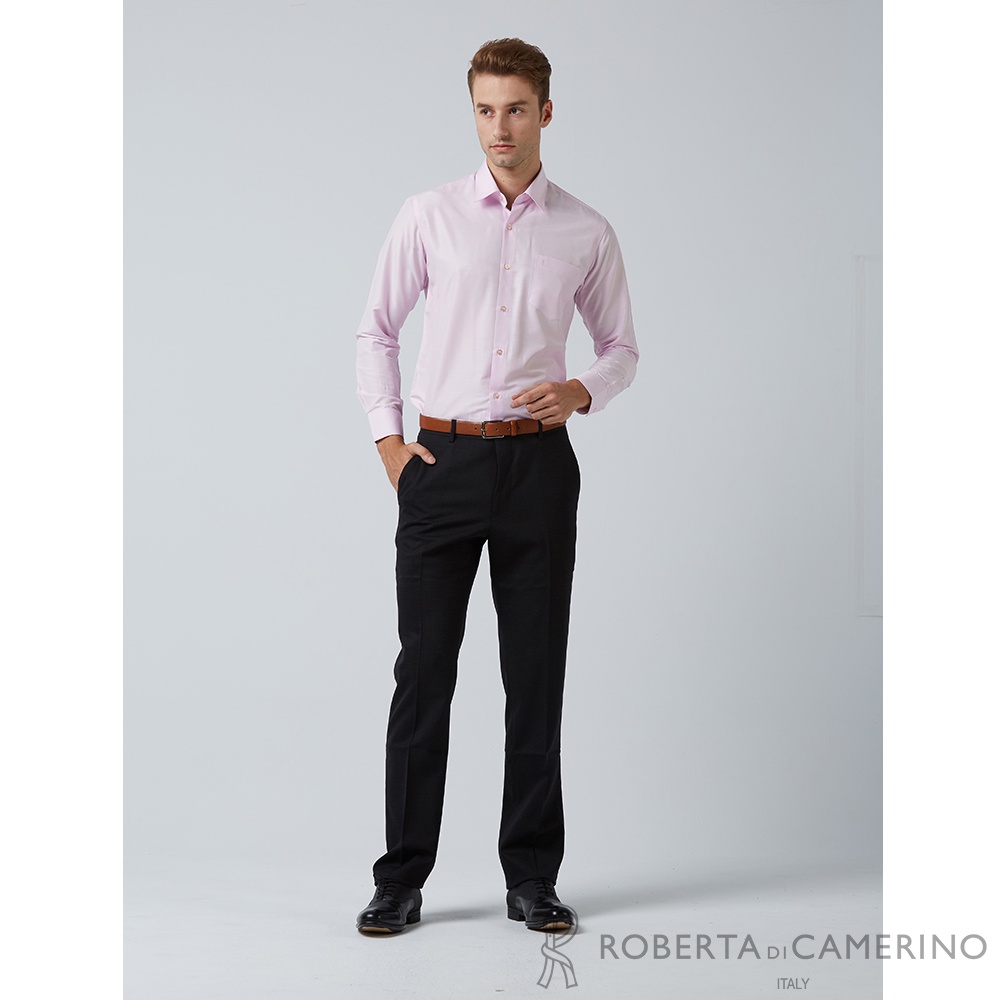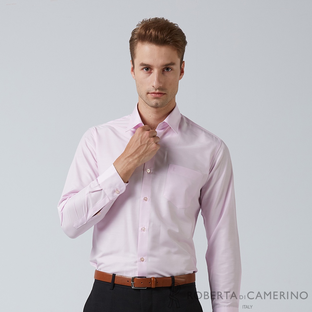 【ROBERTA諾貝達】 日本素材 台灣製 腰身線條剪裁 素面長袖襯衫 HDE02-71粉紅