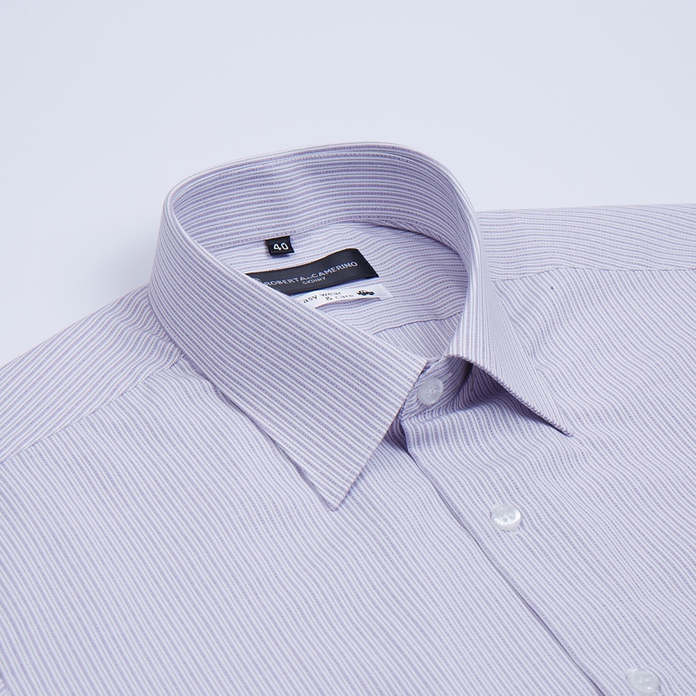 【ROBERTA諾貝達】 台灣製 修身版 親膚舒適商務休閒短袖襯衫 紫