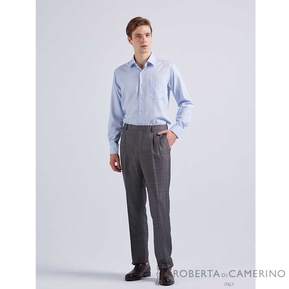 【ROBERTA諾貝達】 商務襯衫 職場型男 素暗條紋長袖襯衫 淺藍