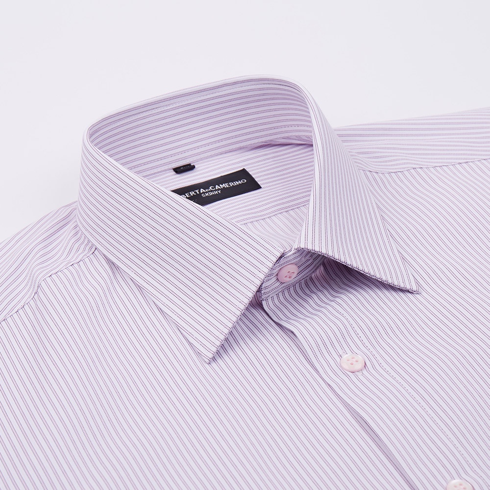 【ROBERTA諾貝達】 台灣製男裝 合身版 時尚魅力條紋長袖襯衫 RDF62-72粉紫