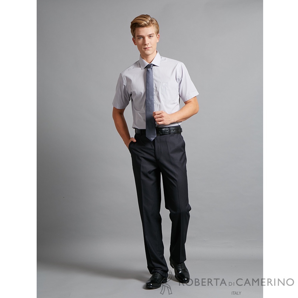 ROBERTA諾貝達 商務經典 素面合身款式短袖襯衫 灰色