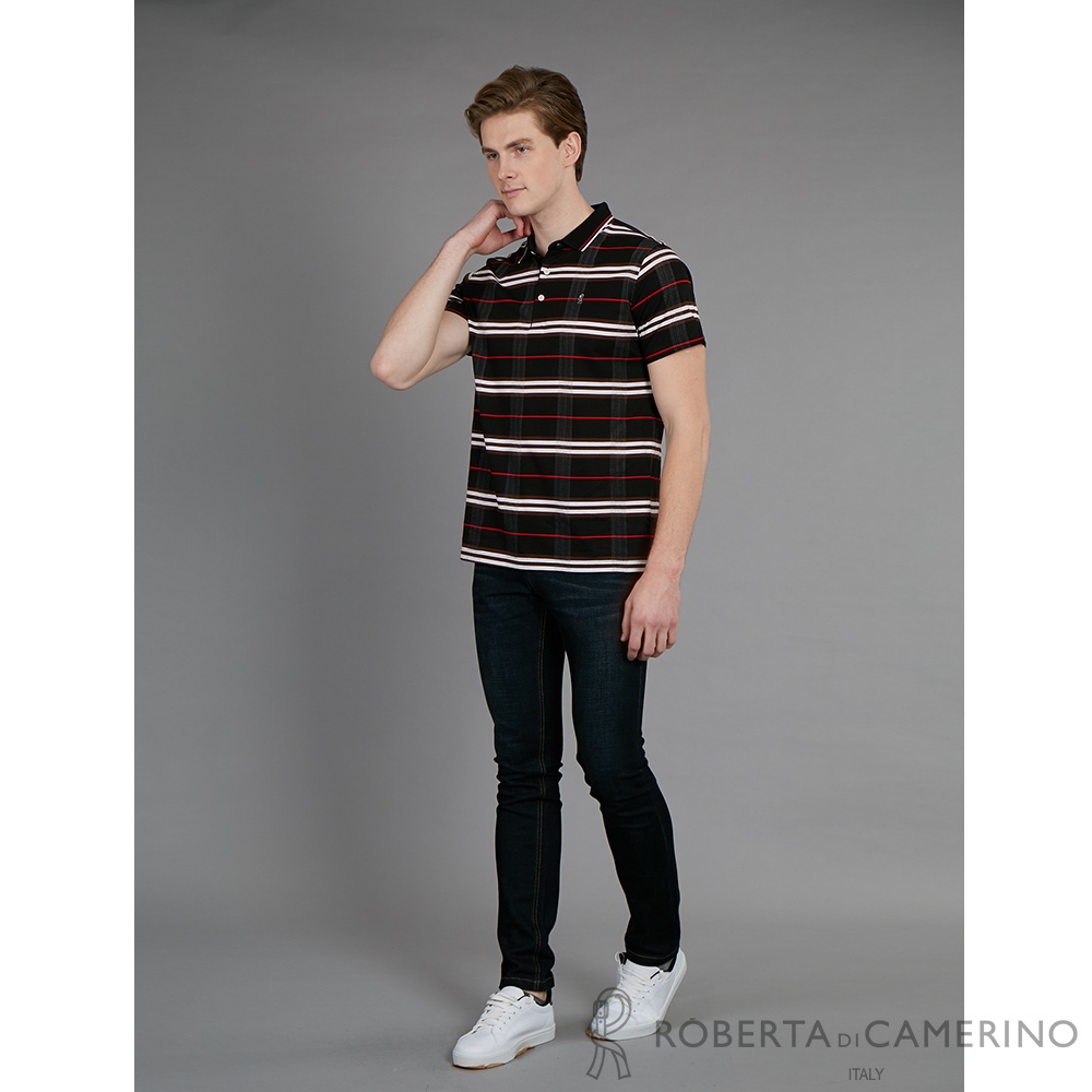 ROBERTA諾貝達 休閒時尚 魅力色彩 短袖POLO衫 黑色
