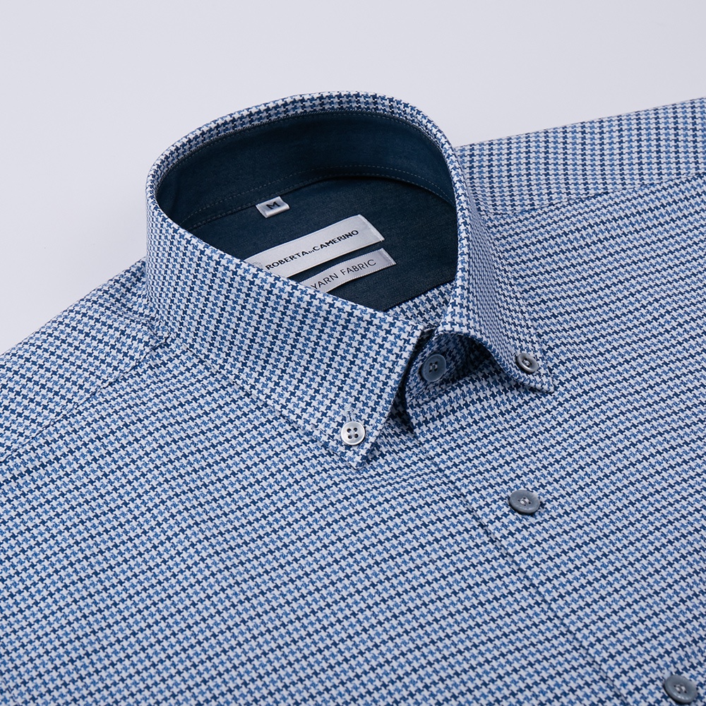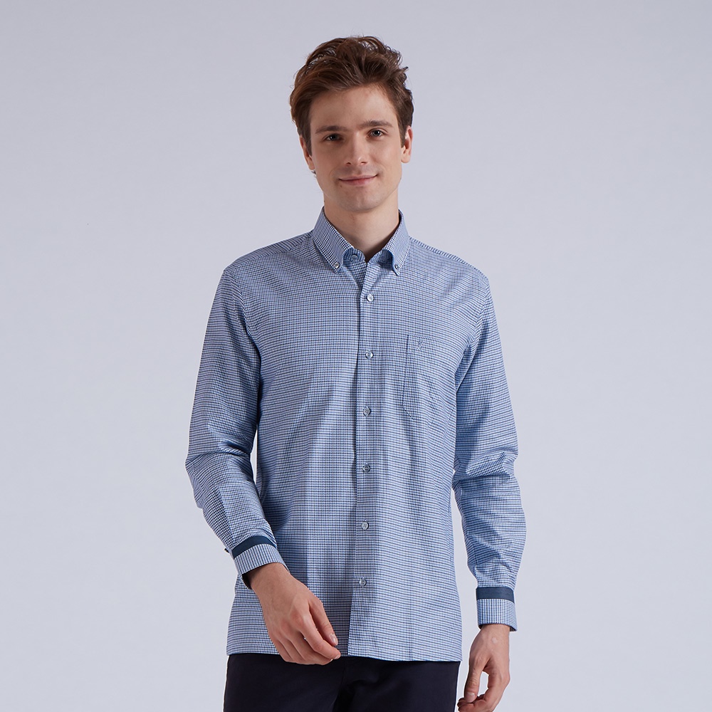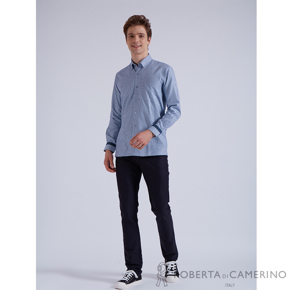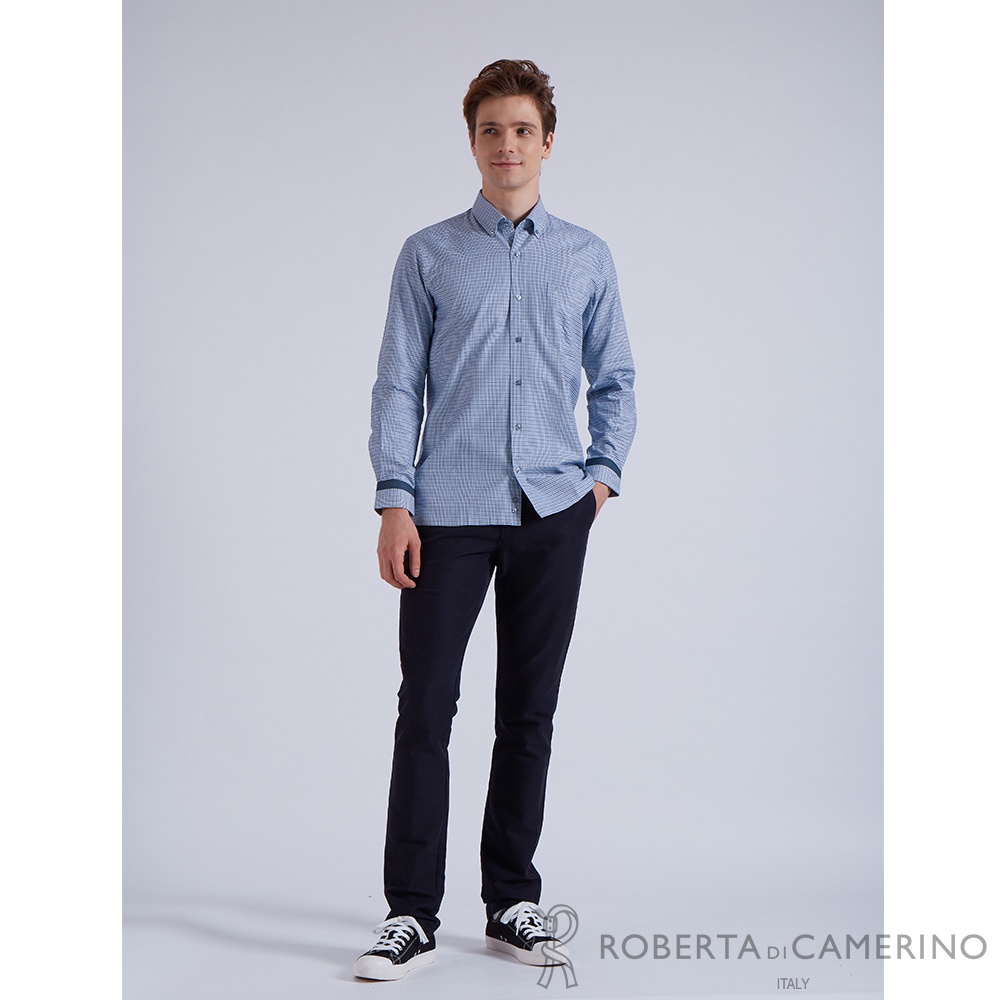 【ROBERTA諾貝達】 秋冬男裝 進口素材 純精梳棉 舒適硬挺長袖襯衫 RFI50-38 藍