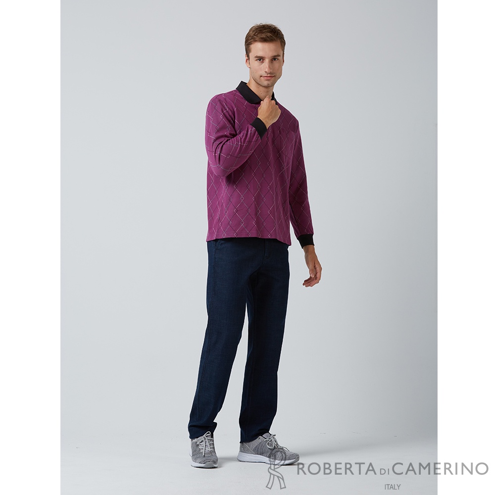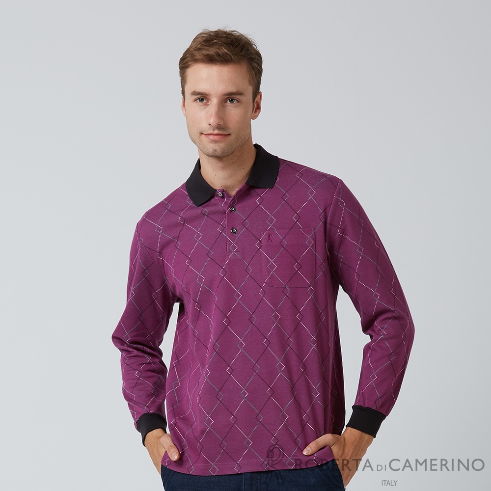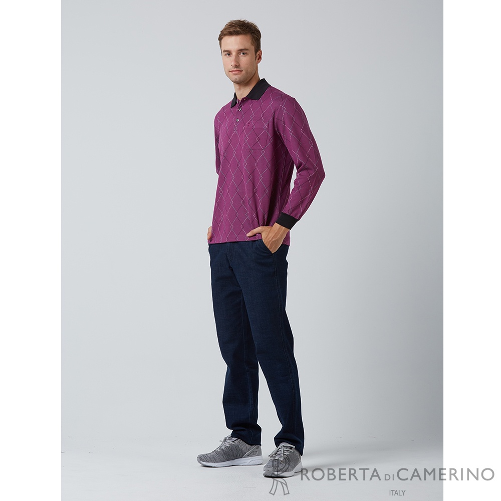 【ROBERTA諾貝達】 休閒男裝 紳士嚴選 精緻單品長袖POLO衫 紫紅