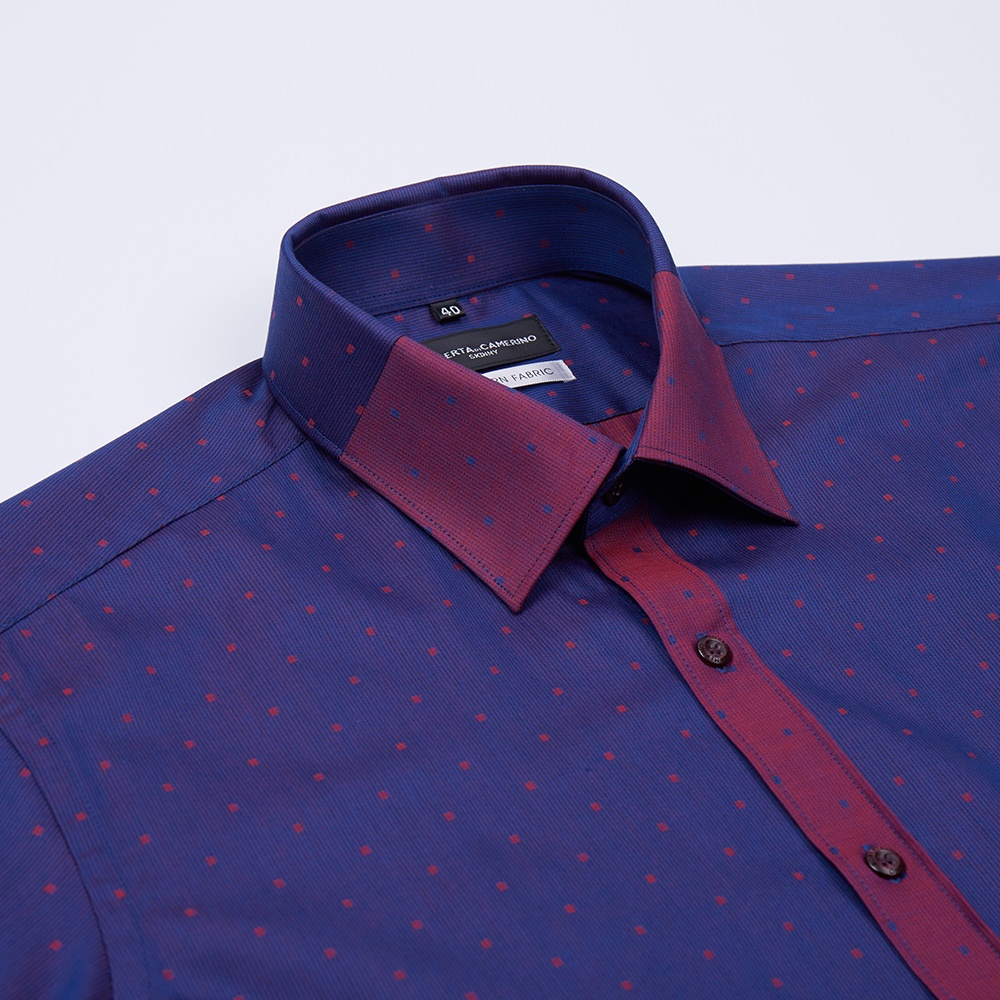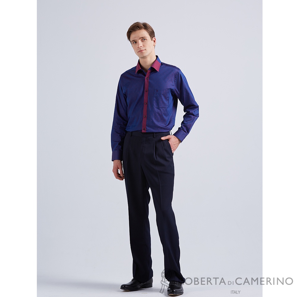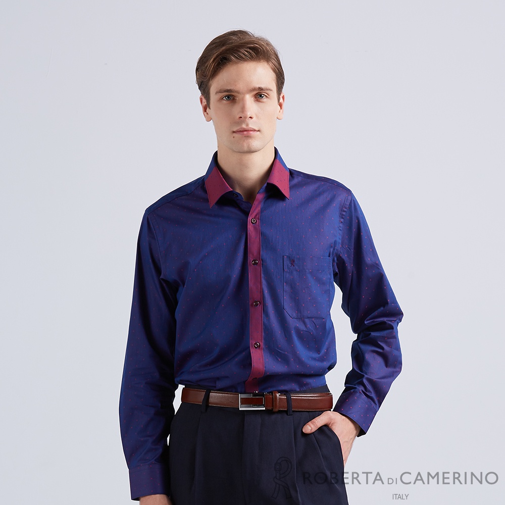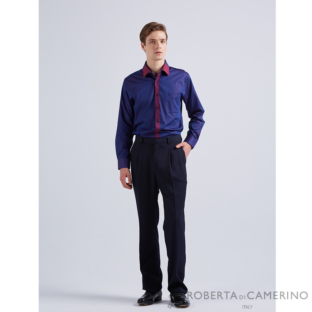 【ROBERTA諾貝達】 商務襯衫 印度素材 純棉修身版 絲的光澤長袖襯衫 RDJ37-78藍