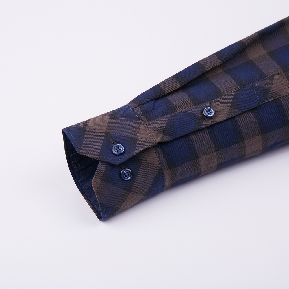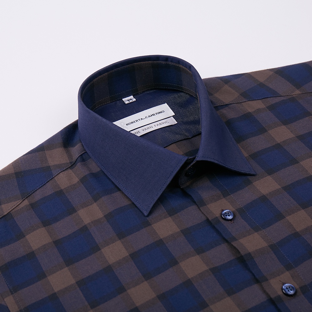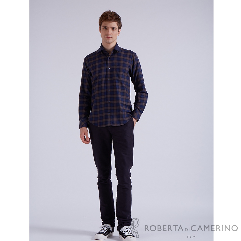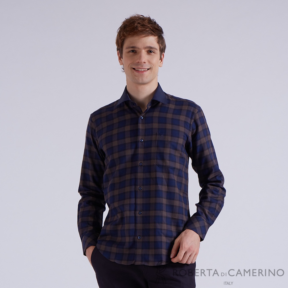 【ROBERTA諾貝達】 秋冬男裝 奧地利素材 內斂優雅 雙色格紋長袖襯衫 RFI56-87 藍