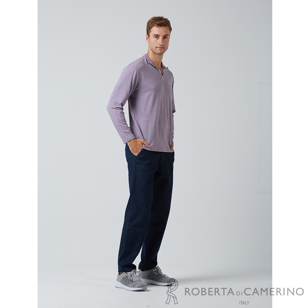 【ROBERTA諾貝達】 男裝 經典條紋 保溫紗長袖POLO棉衫 RBF76-27紫