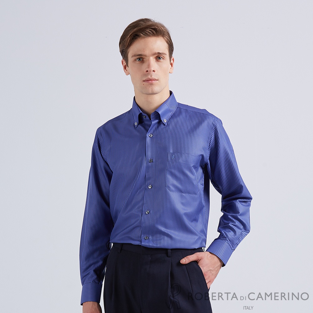 【ROBERTA諾貝達】 台灣製 吸濕排汗/輕柔觸感長袖襯衫 RFJ51-37藍