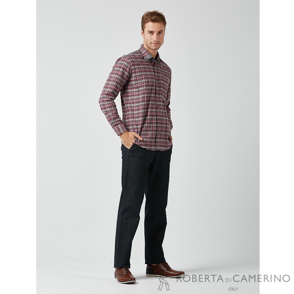 【ROBERTA諾貝達】 台灣製男裝 經典格紋色底 純棉長袖襯衫 HJD04-75紅