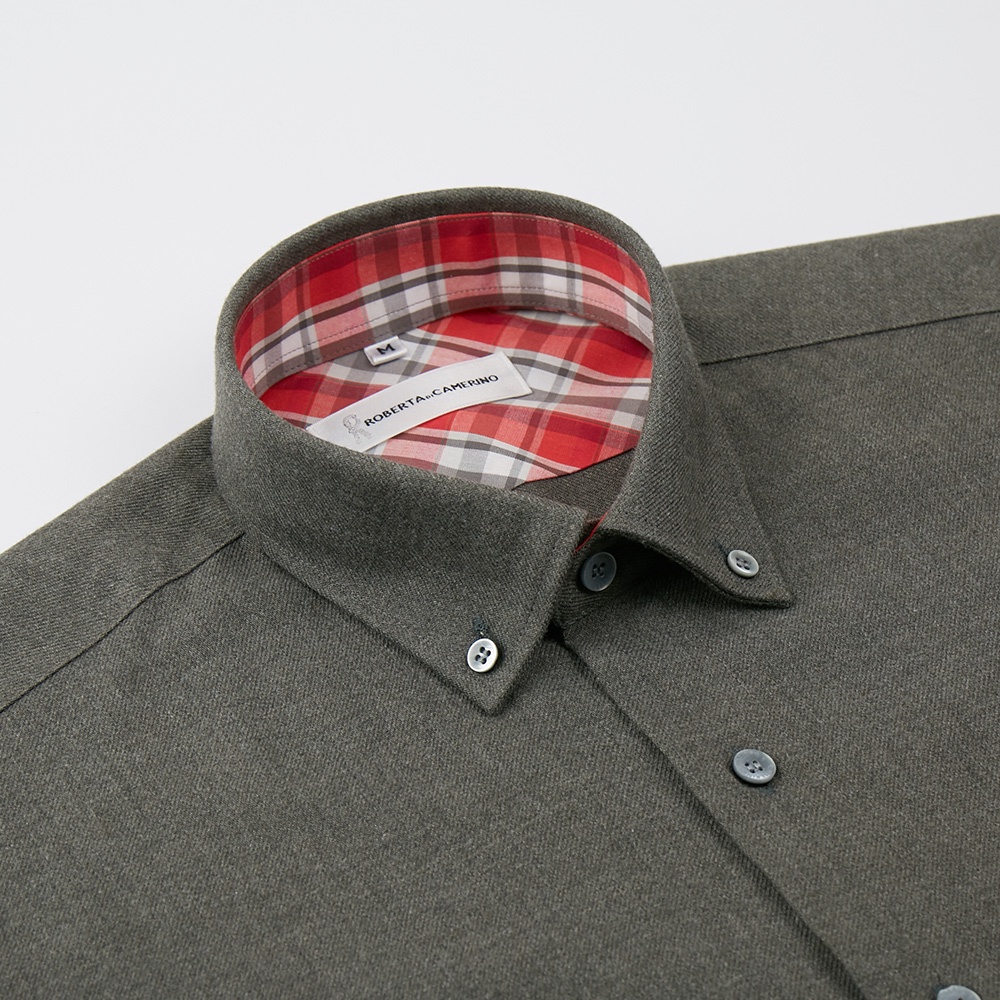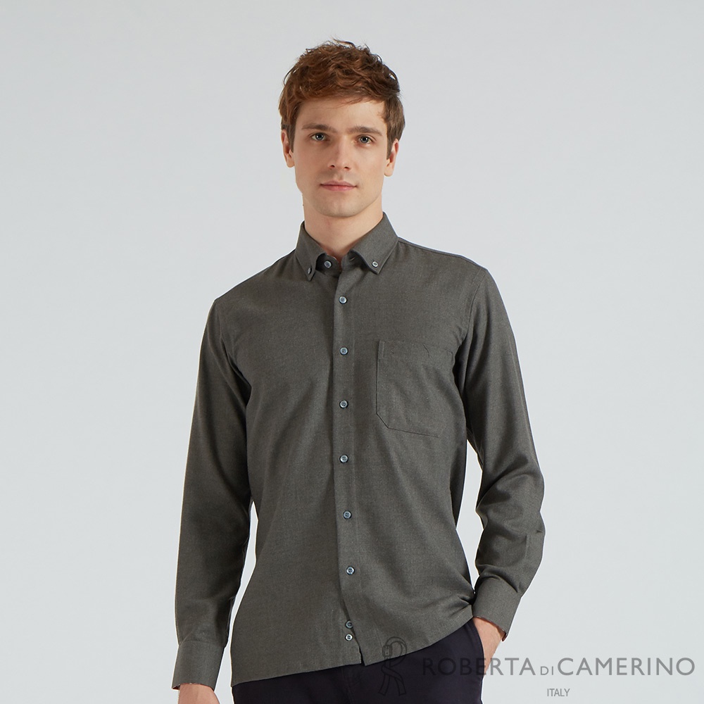 【ROBERTA諾貝達】 男裝 冬季限定 中空紗羊毛 質地保暖長袖厚襯衫 RFI84-95 軍綠