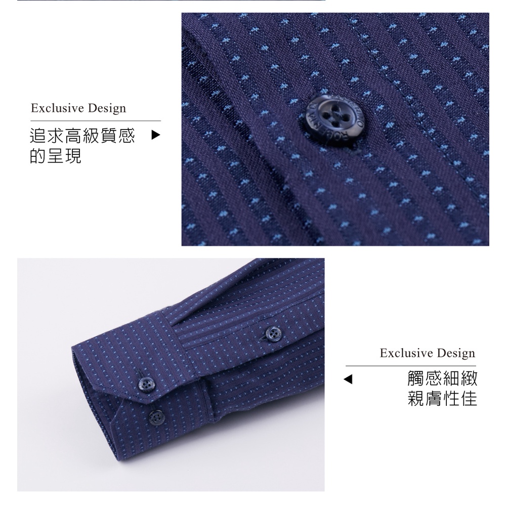 【ROBERTA 諾貝達】男裝 藍色長袖襯衫-秋冬條紋款(台灣製 易洗好整理)