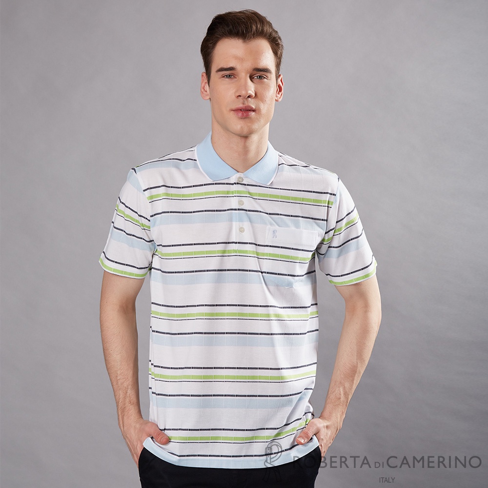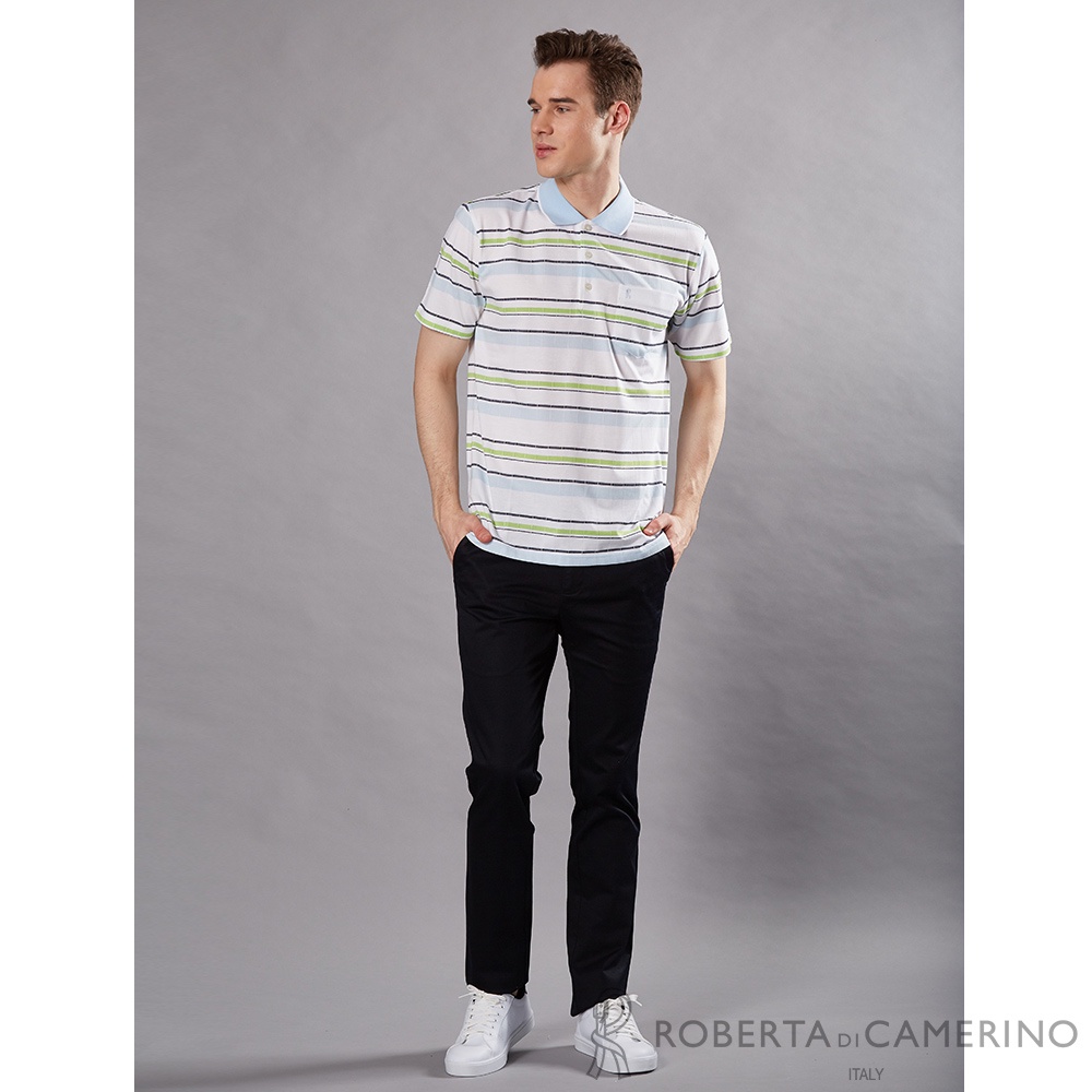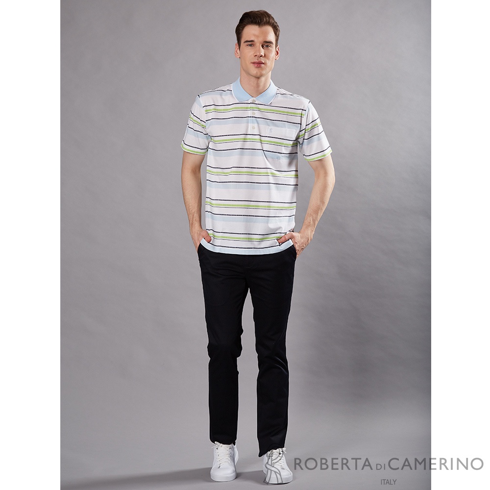 ROBERTA諾貝達 台灣製 格調優雅 休閒短袖POLO棉衫 水藍