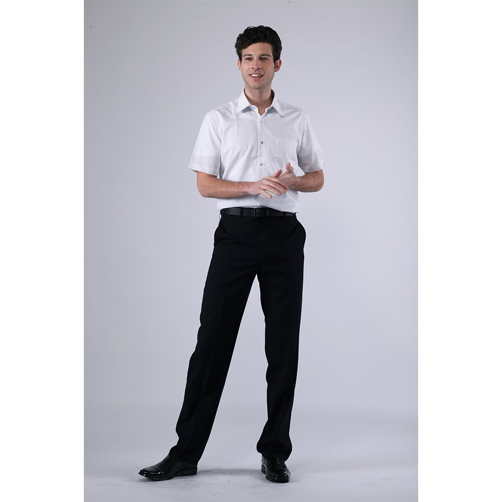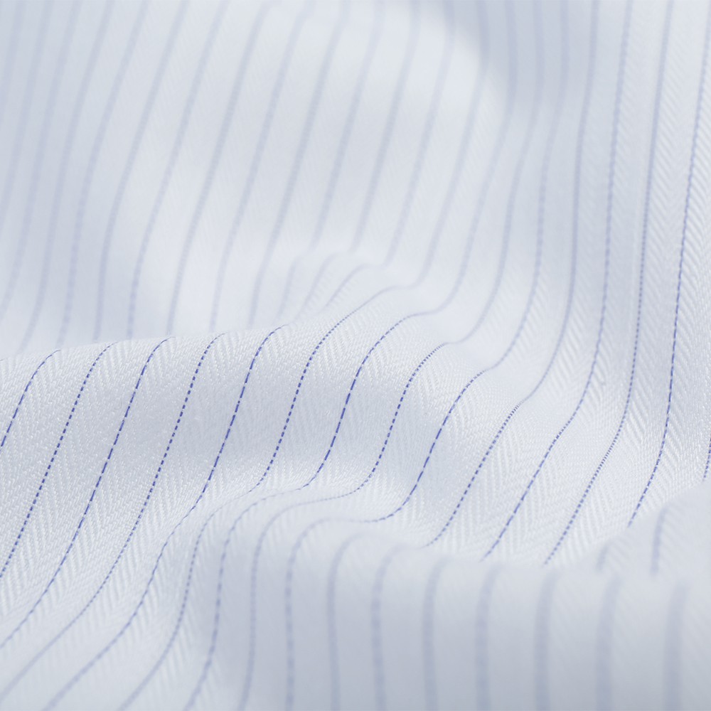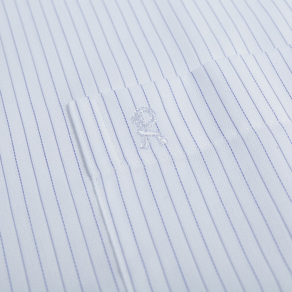 ROBERTA諾貝達 台灣製 合身版 職場紳士 緹花條紋短袖襯衫 藍白