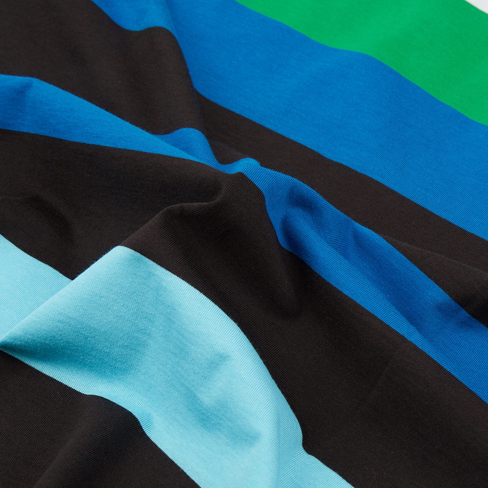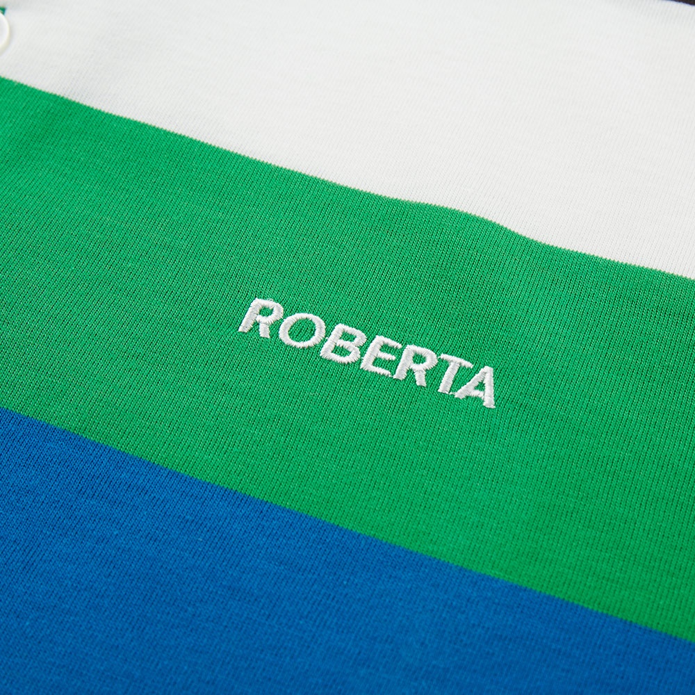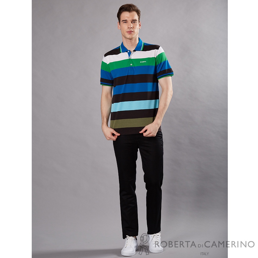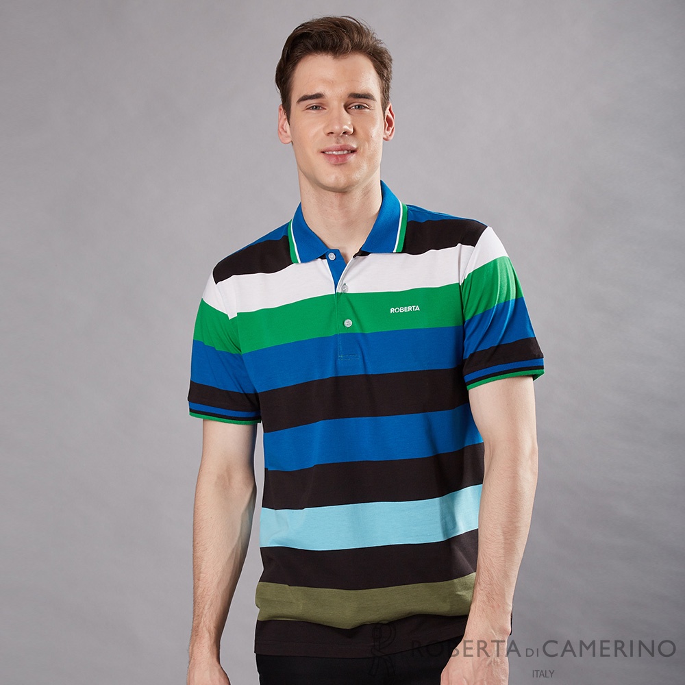 ROBERTA諾貝達 台灣製 配色寬條紋短袖POLO棉衫 藍綠
