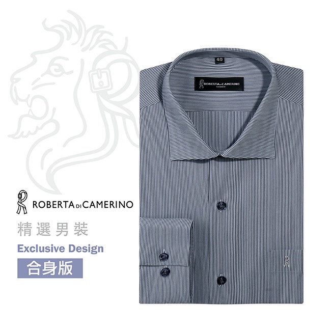 ROBERTA諾貝達 台灣製 合身版 休閒紳士 優雅直條紋長袖襯衫 RDE42-45 藍綠