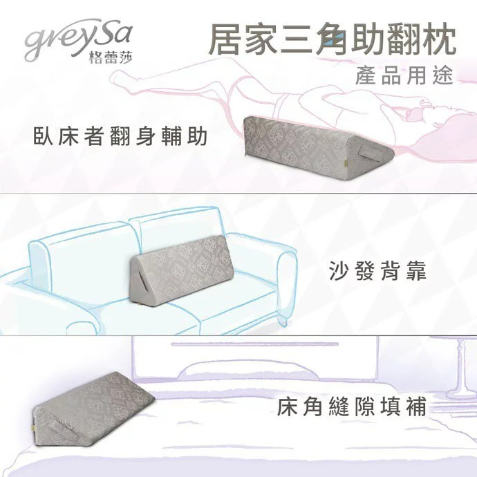 【耆妙屋】格蕾莎居家三角助翻枕(銀灰)-翻身輔助 翻身枕 翻身器 老人翻身墊 褥瘡枕 老人翻身神器 三角枕墊