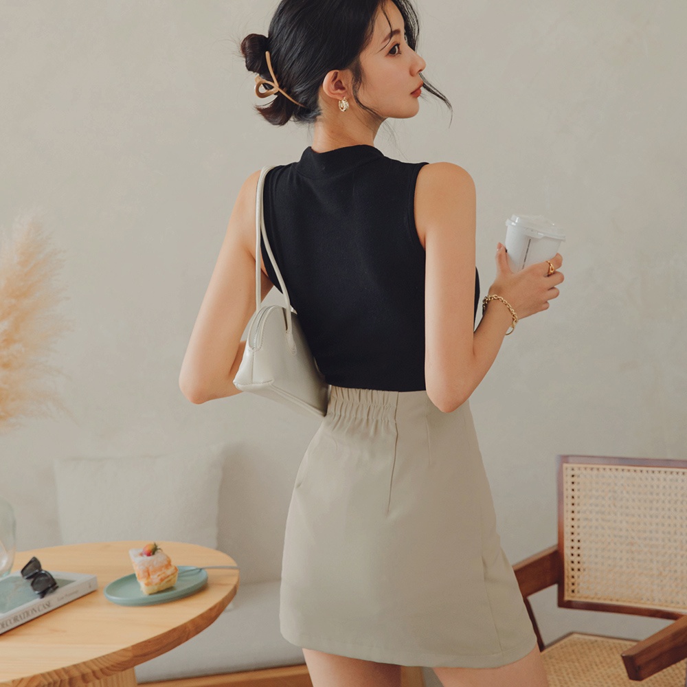 AIR SPACE LADY 360°小蠻腰高腰排釦打褶西裝褲裙(灰綠)