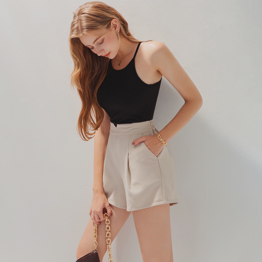 AIR SPACE 高腰小V口打褶短褲(杏)